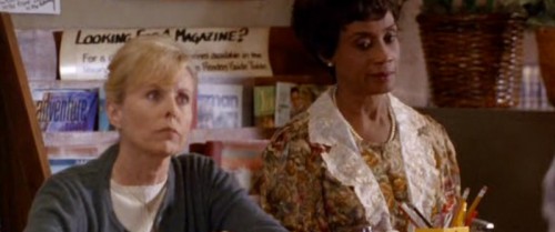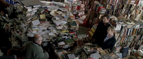 Nej, jag tänker på alla läsande människor, författare, bibliotek och boklådor som flimrar förbi på film och tv då och då. Från och med nu kommer jag att samla alla dessa små observationer i den nya kategorin och jag håller tummarna för att det finns andra som är lika barnsliga som jag och kan roas lite av detta. Här är några första smakprov ur film + tv jag sett senaste veckorna: