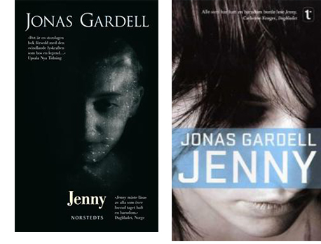 Den engelska utgåvan känns så himla formulaiskt när det gäller böcker som ska till tala en yngre publik. Den transparenta färgade plattan känns så gjord. Å andra sidan är den svenska typografin ute och cyklar. Författarnamnet ger mig Jan Guillou-vibbar och “Jenny” är i något helt annat klumpigt typsnitt. Oavgjort.
